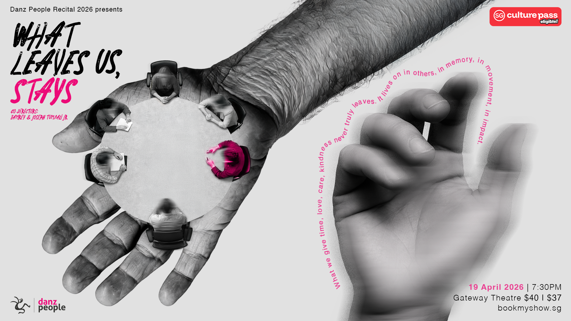 “What Leaves Us, Stays.” is a street dance production featuring a cast of over 100 dancers and choreographers, co-directed by Zamrey (Singapore) and Joseph Tumbali Jr. (Philippines). Through powerful movement and expressive storytelling, the work invites audiences to reflect on the invisible threads that connect our actions across time.